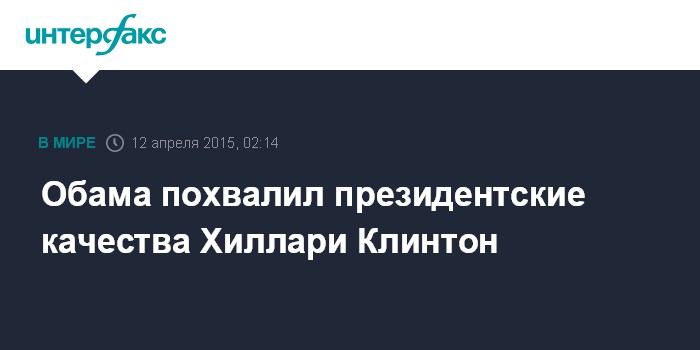 Москва. 12 апреля. INTERFAX.RU - Президент США Барак Обама заявил, что Хиллари Клинтон была бы "превосходным президентом", сообщило в воскресенье агентство Associated Press.
