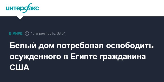 Москва. 12 апреля. INTERFAX.RU - Белый дом распространил заявление с требованием незамедлительного освобождения гражданина США, приговоренного в Египте к пожизненному заключению.