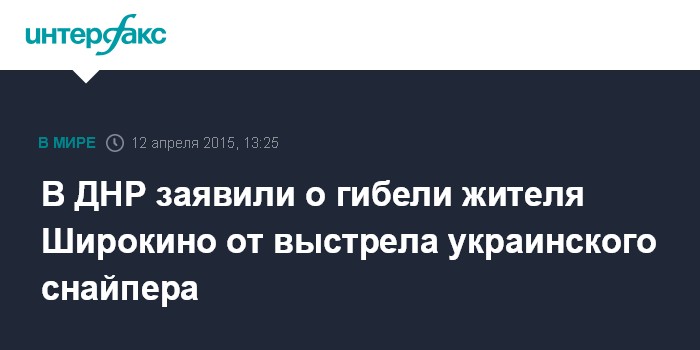 Москва. 12 апреля. INTERFAX.RU - В селе Широкино под Мариуполем от выстрела снайпера погиб мужчина, кроме того от обстрелов украинских силовиков пострадали три военнослужащих, заявил журналистам в воскресенье замминистра обороны ДНР Эдуард Басурин.