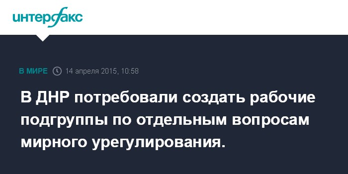 "Прежде всего, надо создать рабочие подгруппы немедленно и одновременно. Мы считаем, что вне рабочих подгрупп не должны приниматься никакие решения! С сегодняшнего дня ДНР официально заявляет, что будет вести диалог по всем проблемам урегулирования только через рабочие подгруппы", - заявил Пушилин "Интерфаксу".