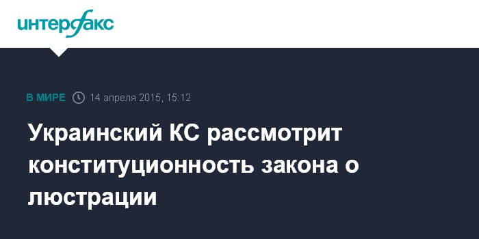 Москва. 14 апреля. INTERFAX.RU - Конституционный суд Украины в четверг, 16 апреля, приступит к слушанию дела о конституционности отдельных положений закона "Об очищении власти".