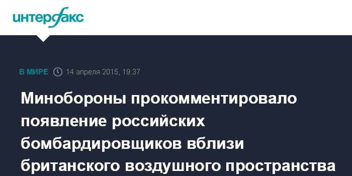 Ранее британские СМИ сообщили со ссылкой на Минобороны страны, что истребители ВВС Великобритании были подняты в воздух для перехвата двух российских бомбардировщиков, приблизившихся к британскому воздушному пространству.