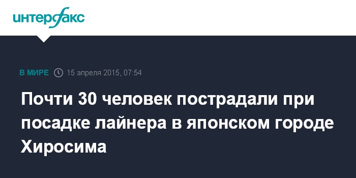 Почти 30 человек пострадали при посадке лайнера в японском городе Хиросима