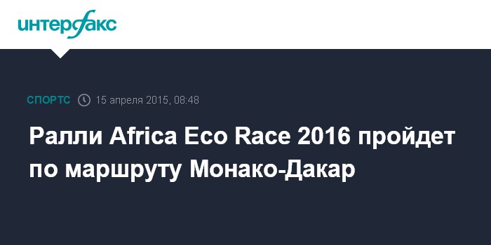 Москва. 15 апреля. INTERFAX.RU - Международный ралли-марафон Africa Eco Race в 2016 году пройдет по маршруту Монако-Дакар, сообщил руководитель гонки Жан-Луи Шлессер на презентации соревнований в отеле "Азимут" в Астрахани.