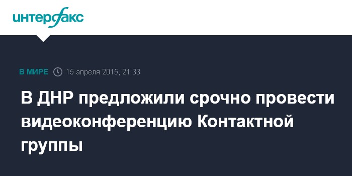 Москва. 15 апреля. INTERFAX.RU – Представители самопровозглашенной Донецкой народной республики настаивают на проведении срочной видеоконференции Контактной группы после того, как Киев официально заявил ОБСЕ о назначении своих представителей в подгруппы по отдельным вопросам мирного урегулирования.