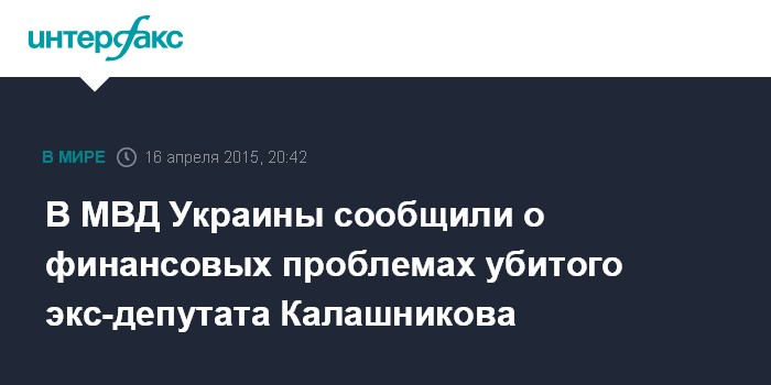 В МВД Украины сообщили о финансовых проблемах убитого экс-депутата Калашникова