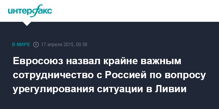 Евросоюз назвал крайне важным сотрудничество с Россией по вопросу урегулирования ситуации в Ливии