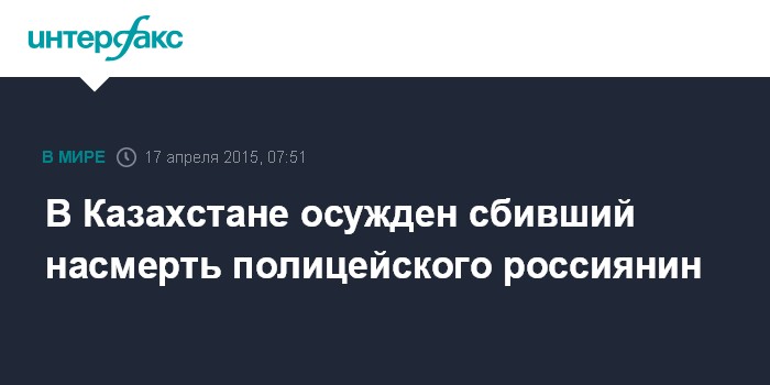 Москва. 17 апреля. INTERFAX.RU - Суд Темиртау (город в Карагандинской области Казахстана) приговорил к году колонии гражданина РФ за ДТП со смертельным исходом.