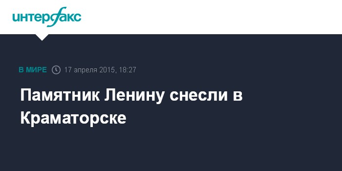 Москва. 17 апреля. INTERFAX.RU - Активисты в пятницу разрушили памятник Ленину на центральной площади Краматорска, который в настоящее время является административным центром контролируемой Украиной части Донецкой области.