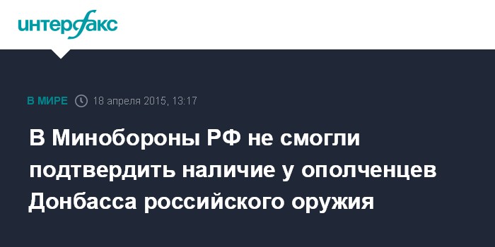 В Минобороны РФ не смогли подтвердить наличие у ополченцев Донбасса российского оружия