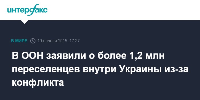 Москва. 19 апреля. INTERFAX.RU - Конфликт на востоке Украины затронул в общей сложности 5 млн человек и заставил искать новое место жительства в пределах страны 1,23 млн из них, сообщается в официальном микроблоге ООН в твиттере.