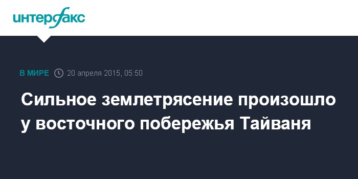 Москва. 20 апреля. INTERFAX.RU - Землетрясение магнитудой 6,3 произошло в акватории Тихого океана в 64 км к юго-востоку от города Суао на Тайване, сообщает Геофизическая служба Сибирского отделения РАН.