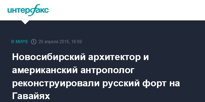 Москва. 20 апреля. INTERFAX.RU - Профессор антропологии Гавайского университета Питер Миллс и декан факультета допобразования Новосибирской государственной архитектурно-художественной академии Александр Молодин восстановили облик Елизаветинского форта XIX, говорится в сообщении университета.