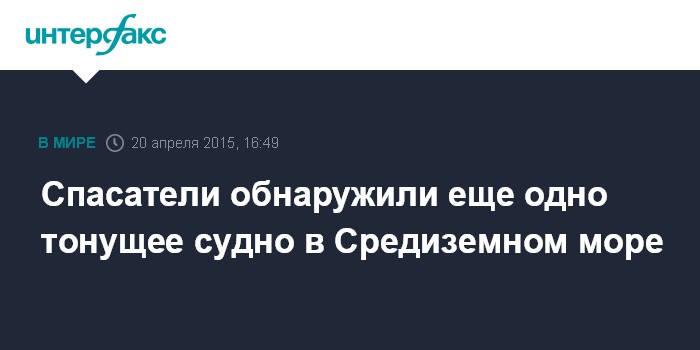 Москва. 20 апреля. INTERFAX.RU - Спасатели засекли еще одно тонущее судно с мигрантами в Средиземном море, об этом пишет "Би-би-си" со ссылкой на заявление премьер-министра Италии Маттео Ренци.