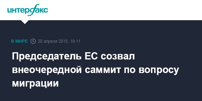 Москва. 20 апреля. INTERFAX.RU - Председатель Европейского Совета Дональд Туск объявил о решении созвать внеочередной саммит Евросоюза по средиземноморской миграции 23 апреля.