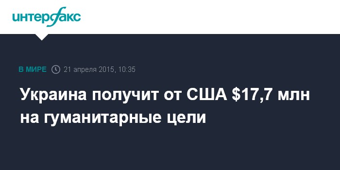 Москва. 21 апреля. INTERFAX.RU - США выделят правительству Украины дополнительно $17,7 млн в качестве гуманитарной помощи для уязвимых групп населения, сообщил Белый дом.