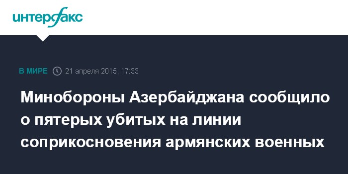 Минобороны Азербайджана сообщило о пятерых убитых на линии соприкосновения армянских военных