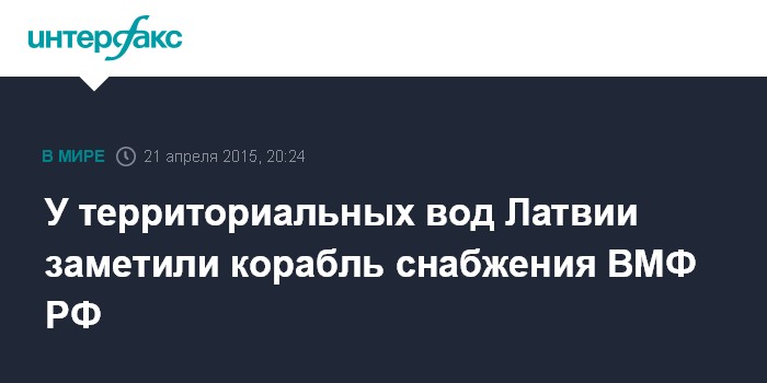 Москва. 21 апреля. INTERFAX.RU - В латвийской эксклюзивной экономической зоне во вторник зафиксирован корабль снабжения ВМФ России "Бира", сообщили в твиттере представители Национальных вооруженных сил Латвии.