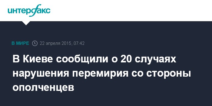 В Киеве сообщили о 20 случаях нарушения перемирия со стороны ополченцев