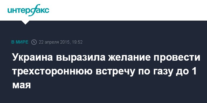 Москва. 22 апреля. INTERFAX.RU - Украина хотела бы, чтобы трехсторонняя встреча по газу состоялась до 1 мая, сообщил глава Минэнергоугля Украины Владимир Демчишин журналистам в рамках конференции HIS CERAWeek.