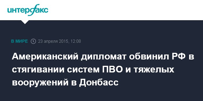 Москва. 23 апреля. INTERFAX.RU - Посол США на Украине Джеффри Пайетт заявляет, что российские военные сосредоточили на востоке Украины значительное количество тяжелого вооружения и развернули дополнительные системы ПВО в Донбассе.