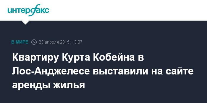 Москва. 23 апреля. INTERFAX.RU - Квартиру в Лос-Анджелесе, где лидер группы Nirvana Курт Кобейн и его подруга Кортни Лав жили в 1991-1992 годах, можно арендовать на сайте для поиска временного жилья Airbnb.