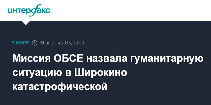 Москва. 24 апреля. INTERFAX.RU - Ситуация в селе Широкино на юге Донецкой области, где ежедневно продолжаются обстрелы и бои, остается катастрофической, заявил в пятницу заместитель главы СММ ОБСЕ в Украине Александр Хуг.