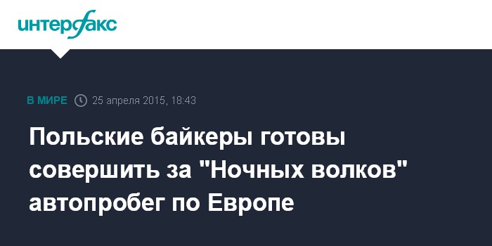Москва. 25 апреля. INTERFAX.RU - Польские байкеры готовы проехать по маршруту "Ночных волков", если их российских "коллег" не пропустят через границу, говорится заявлении, которое подписал Виктор Вэнгжын - командир международных мотоциклетных Катыньских Рейдов и Ясногорских мотоциклетных слетов имени Ксёндза Улана Здислава Ястжэмбец Пешковского.