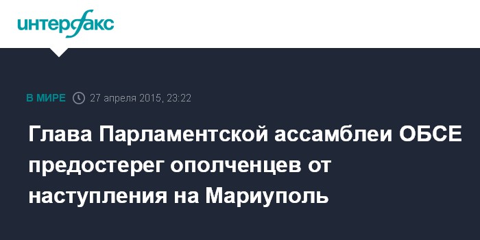 Глава Парламентской ассамблеи ОБСЕ предостерег ополченцев от наступления на Мариуполь