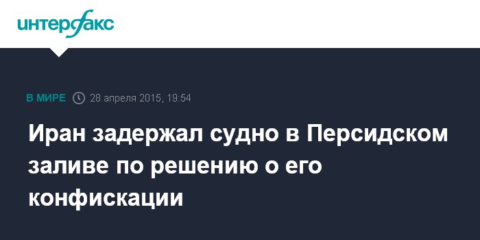 Москва. 28 апреля. INTERFAX.RU - Иранские власти задержали судно MV Maersk Tigris, поскольку иранская Организация портов и судоходства выписала ордер на его конфискацию, сообщил во вторник агентству Fars информированный источник.