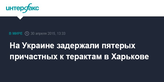 Москва. 30 апреля. INTERFAX.RU - В Харькове задержаны пять человек, причастных к совершению серии терактов, заявил советник главы СБУ Маркиян Лубкивский.