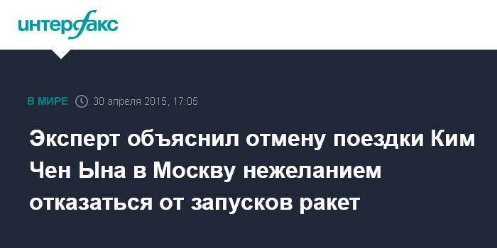 Москва. 30 апреля. INTERFAX.RU - Решение северокорейского лидера Ким Чен Ына не приезжать в Москву на День Победы, скорее всего, связано с нежеланием Пхеньяна обещать России не проводить запуски баллистических ракет большой дальности, считает руководитель Центра корейских исследований Института Дальнего востока РАН Александр Жебин.