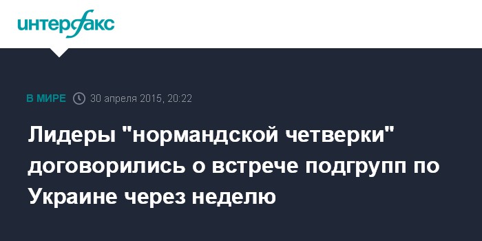 Москва. 30 апреля. INTERFAX.RU - Лидеры стран "нормандской четверки" в ходе телефонного разговора в четверг констатировали некоторый прогресс в обеспечении перемирия в Донбассе и договорились о первой встрече рабочих подгрупп через неделю.