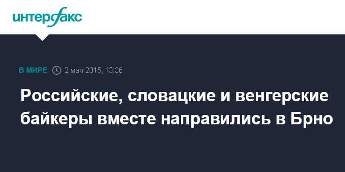По его словам, также по состоянию на 12:40 по Москве субботы колонна из 32 мотоциклистов, в числе которых россияне и присоединившиеся к ним байкеры из Словакии и Венгрии, направляется в Брно.