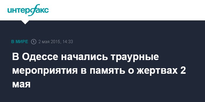 Москва. 2 мая. INTERFAX.RU - В Одессе проходят траурные мероприятия, приуроченные к годовщине трагедии 2 мая прошлого года.