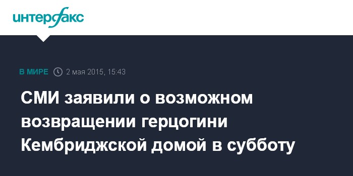 Москва. 2 мая. INTERFAX.RU - Герцогиня Кембриджская может уже в субботу покинуть больницу и вернуться домой, сообщают британские издания.