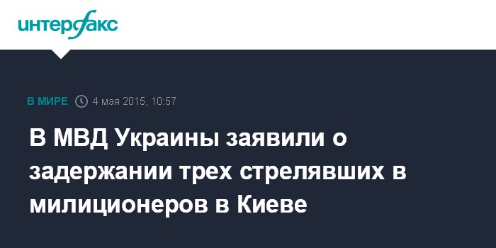 Москва. 4 мая. INTERFAX.RU - Правоохранительные органы Киева задержали трех преступников, стрелявших в работников милиции в ночь на понедельник, сообщил глава МВД Арсен Аваков.