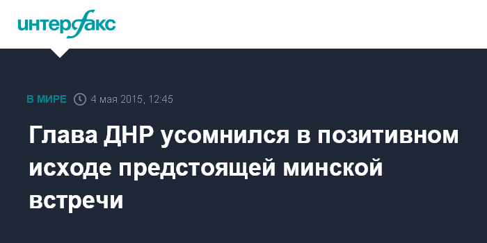 Москва. 4 мая. INTERFAX.RU - Глава самопровозглашенной Донецкой народной республики Александр Захарченко сомневается в позитивном исходе минской встречи Контактной группы, намеченной на 6 мая.