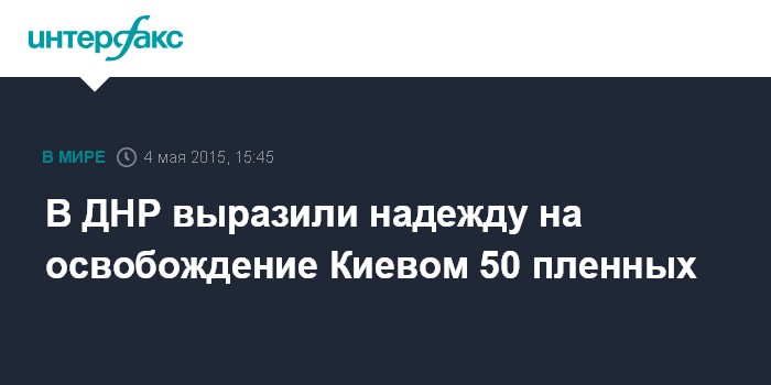 Москва. 4 мая. INTERFAX.RU - Власти самопровозглашенной Донецкой народной республики рассчитывают на освобождение украинской стороной 50 пленных после завершения очередных переговоров контактной группы в Минске, сообщила уполномоченный по правам человека ДНР Дарья Морозова.
