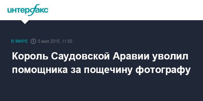 Москва. 5 мая. INTERFAX.RU - Король Салман ибн Абдул-Азиз уволил главу службы королевского протокола в связи с тем, что тот ударил фотокорреспондента, сообщают во вторник СМИ Саудовской Аравии.