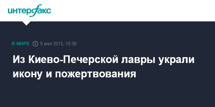 Москва. 5 мая. INTERFAX.RU - В Киево-Печерской лавре на Украине совершена кража иконы и ящика с пожертвованиями.