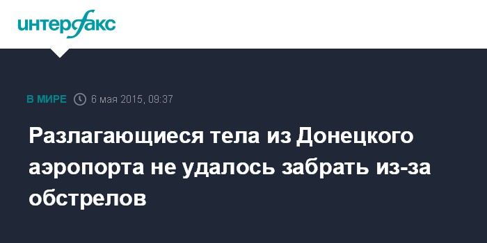 "Из-за боевых действий невозможно забрать тела военнослужащих, погибших в районе Донецкого аэропорта. С потеплением разложение трупов значительно ускорилось - в результате район может стать идеальной средой для вспышки опасных заболеваний", - приводит слова Бондаренко Донецкое агентство новостей.