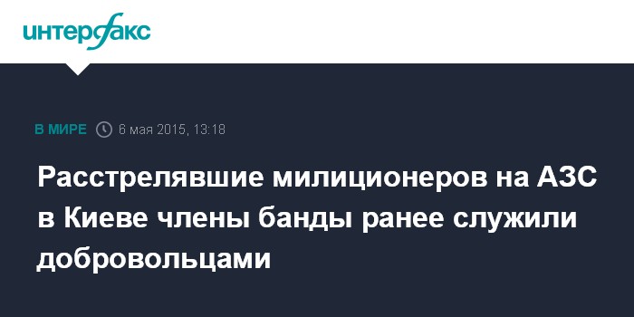 Москва. 6 мая. INTERFAX.RU - Министр внутренних дел Украины Арсен Аваков сообщил, что несколько человек из группировки, которые расстреляли милиционеров при разбойном нападении на АЗС в Киеве, имеют отношение к добровольческим батальонам.