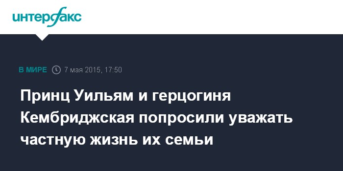 Принц Уильям и герцогиня Кембриджская попросили уважать частную жизнь их семьи