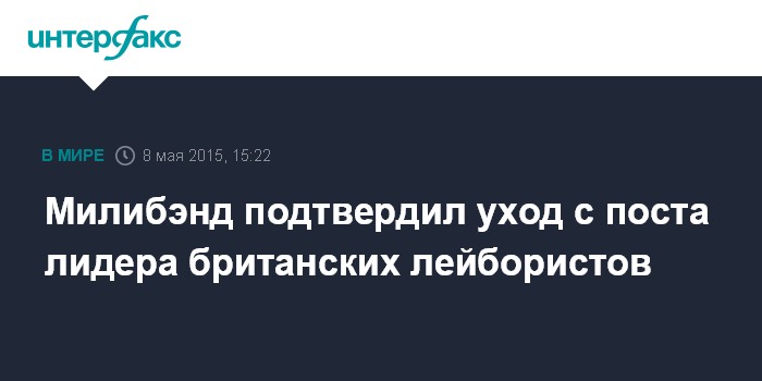 Москва. 8 мая. INTERFAX.RU - Лидер британской Лейбористской партии Эд Милибэнд объявил о решении покинуть свой пост в связи с неудачей на парламентских выборах, сообщает в пятницу "Би-Би-Си".