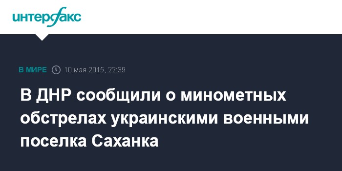 Москва. 10 мая. INTERFAX.RU - Украинские военные открыли минометный огонь по поселку Саханка Новоазовского района Донбасса, сообщил в воскресенье глава администрации этого населённого пункта Александр Пелипас.