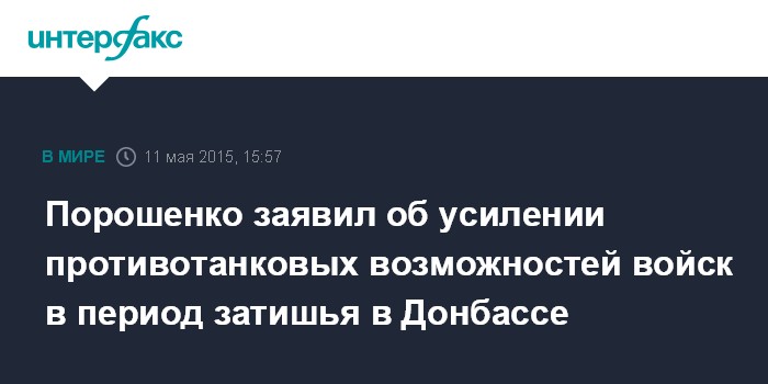 Порошенко заявил об усилении противотанковых возможностей войск в период затишья в Донбассе