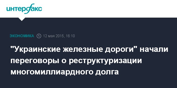 Москва. 12 мая. INTERFAX.RU - Государственная "Укрзализныця", объединяющая все железные дороги страны, уведомила кредиторов о наступлении технического дефолта по выплате основной суммы долга по ряду долговых обязательств и кросс-дефолта по еврооблигациям на $500 млн.