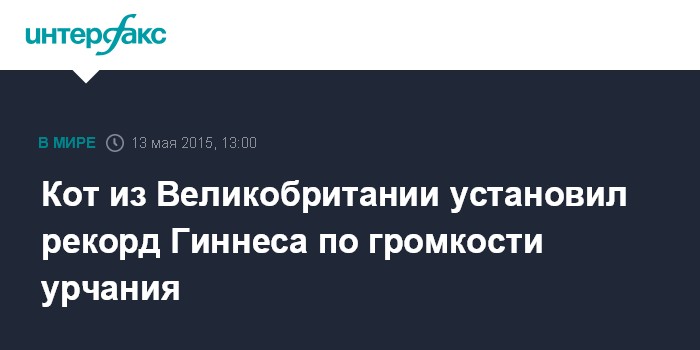 Кот из Великобритании установил рекорд Гиннеса по громкости урчания
