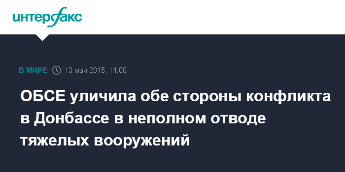 Москва. 13 мая. INTERFAX.RU - Вооруженные силы Украины и их противники до сих пор полностью не отвели тяжелое вооружение от линии соприкосновения в Донбассе, заявил замглавы Специальной мониторинговой миссии (СММ) ОБСЕ Александер Хуг.
